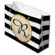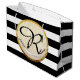 Sacola Para Presentes Grande Monograma de Greve Branca Preta de Folha Ouro Mode