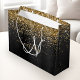 Sacola Para Presentes Grande Monograma Dourado de brilho preto com brilho perso
