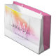 Sacola Para Presentes Grande Monograma holográfico, rosa e Dourado