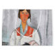 Amedeo Clemente Modigliani (12 de julho de 1884 - 24 de Janeiro de 1920) era um pintor e escultor judeu italiano que trabalhava principalmente em França. Ele é conhecido por retratos e nudes num estilo moderno caracterizado pelo alongamento de rostos, pescoços e figuras que não foram bem recebidas durante sua vida, mas que mais tarde encontraram aceitação. Modigliani passou a juventude na Itália, onde estudou a arte da antiguidade e do Renascimento. Em 1906 mudou-se para Paris, onde entrou em contato com artistas como Pablo Picasso e Constantin Brâncuși. Em 1912 Modigliani exibia esculturas altamente estilizadas com cubistas do grupo Section d'Or no Salon d'Automne. A obra de Modigliani inclui pinturas e desenhos. De 1909 a 1914 dedicou-se principalmente à escultura. Seu principal tema eram retratos e figuras de cheio, tanto nas imagens como nas esculturas. Modigliani teve pouco sucesso enquanto estava vivo, mas depois de sua morte alcançou popularidade excelente. Morreu de meningite tuberculosa, aos 35 anos, em Paris. Citação: Wikipedia