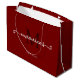 Saco de presente grande vermelho escuro com guião monograma personalizado.