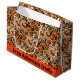 Este grande saco de presentes apresenta um na moda com desejos de Halloween, feito em tons de marrom e laranja. É ideal para apresentar presentes durante a época das bruxas. O tamanho do saco o torna adequado para presentes maiores, enquanto o esquema de cores e o texto "Desejos de Halloween" evocam o espírito do feriado.