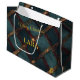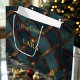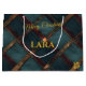 Elevem seu presente de Natal com esta luxuosa bolsa de presente de Natal azul e bronze. Apresentando um padrão de latência impressionante com destaques de ouro e texto personalizável, esse elegante design adiciona um toque refinado a qualquer ocasião festiva. Perfeito para criar momentos de feriado memoráveis e personalizados.