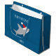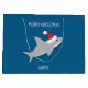 Um grande saco de presentes de Natal de tubarão com um desenho animado, um tubarão vestindo um chapéu de Papai Noel. O saco tem as palavras "Feliz Natal" e um nome personalizável. É uma maneira divertida de adicionar tubarões ao seu presente de Natal. Caricatura Sorridente Tubarão Santa Hat Natal Animal Grande Presente Design de Natal | ©Melissa Patton