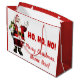 Sacolas de presente de Papai Noel com Papai Noel alegre em um fundo vermelho e branco festivo. Esta sacola de presente de Natal é facilmente personalizada com o nome do destinatário. Você também pode alterar a cor do fundo nesta linda sacola de presente de Natal do Papai Noel.
