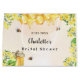 Para um Chá de Noiva e a Noiva abelha. Lindas abelhas, flores amarelas e mel pingando de um favo de mel. Personalize e adicione uma data, nome e texto. O nome é escrito com um estilo de letra moderna.