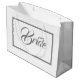 Saco grande de presente da noiva elegante. Texto de script de Cinza dentro de uma borda, fundo branco.