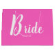 Grande sacola de presentes rosa-rosa. Texto de script casual em branco sobre fundo rosa brilhante com data de casamento em texto clássico de bloco. A data de casamento pode ser removida limpando o campo de texto ou alterada para adicionar iniciais de noiva e noiva.