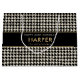 Eleve seu presente e adicione um toque de elegância com este clássico saco de presentes de impressão. Um design chic com o padrão icônico de houndstooth, e personalizado com o nome do destinatário, a idade de aniversário e uma frase personalizada. Este na moda tem texto totalmente personalizável e pode ser adaptado para diferentes comemorações, incluindo aniversários, Dias de as mães, feriados e muito mais. O mesmo design é repetido de ambos os lados. Cores: preto, esbranquiçado e ouro.