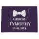 Moderno, elegante, minimalista, simples, masculino, saco de presente grande roxo e branco para o noivo. Perfeito para lembranças de casamento. Você pode personalizá-lo com seu nome e data.