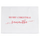 Crie sua própria bolsa de presente de feriado personalizada ou monograma para ela. Personalize o estilo e o tamanho do script de caligrafia manuscrito, moderno e fofo, quando necessário. Aumente o tamanho da fonte para nomes menores... reduza o tamanho da fonte para nomes maiores. Altere a cor branca do fundo ou as cores vermelhas do texto para corresponder ao seu tema de feriado.