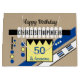 Saco especial de presente de aniversário de um ano. A amostra mostrada é para os 50 anos - personalize-se para se adequar a outra idade e adicione seu nome. Marrom, branco, preto, azul e amarelo. Triângulo, pontos e faixas. Desejando-lhe um aniversário muito especial e um ano maravilhoso pela frente.