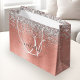 Personalize facilmente este design de sacola de presente chic moderno com brilho bonito prateado em um fundo metálico escovado de rosa dourado.