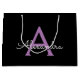 Sacola Para Presentes Grande Nome do Monograma Girly de Script Preto Roxo