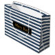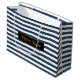 Este "Custom Name Blue/White Stripes Large Gift Bag" apresenta faixas azuis e brancas e pode ser personalizado com o nome do destinatário. Torne seus presentes ainda mais memoráveis com este na moda e este saco de presentes personalizável.