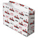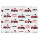Uma bela ilustração de um caminhão trator de Natal vermelho vestindo um chapéu de Papai Noel e decorado em luzes de Natal rebocando um vagão cheio de presentes de Natal. Perfeito para rapazes e raparigas que adoram tratores, caminhões, maquinaria pesada, agricultura ou que adoram brincar com caminhões de brinquedos. Um saco de presente de Natal ideal para entusiastas de caminhões tratores grandes ou pequenos, raparigas ou rapazes. Personalize o nome e torne-o seu.