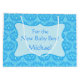 Você vai gostar de dar um presente para o bebê novo nesta bolsa. A cor anuncia o gênero ou o nascimento do bebê. Este padrão de design apresenta azul-turquesa e damasco azul-claro. Um emblema azul tem as palavras personalizáveis "For the New Baby Boy!" com um nome personalizável abaixo destas palavras (o nome pode ser apagado se preferir). A maldita arte original de Phyllis Dobbs é muito na moda e sofisticada enquanto é um pouco mimosa. O design azul damask está em uma tonalidade mais clara e em camadas do azul. Isto coordena com convites, adesivos, outras camisetas e tudo o que você precisa para um chá de fraldas. Totalmente personalizável.