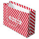 Este "Custom Name Red/White Stripes Large Gift Bag" apresenta faixas vermelhas e brancas e pode ser personalizado com o nome do destinatário. Torne seus presentes ainda mais memoráveis com este na moda e este saco de presentes personalizável.