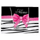 Ideias modernas, trendy, chic e na moda zebra listradas. Padrão de listras de zebra pretas brancas (impressão animal selvagem) personalizado com um arco de diamantes cor-de-rosa (não diamantes reais) personalizado com seus nomes, presentes de monograma ou suas iniciais.