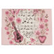 Saco de presentes com ilustração em estilo romântico antigo. Notas musicais, flores, borboletas e um violão. Uma vibração sentimental adorável.