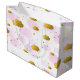 Sacola Para Presentes Grande Nuvens de Aquarela Rosa Douradas Estrelas Céu