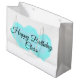 Sacola Para Presentes Grande Nuvens verdes azuis pastel feliz aniversário moder