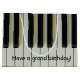 Grande, brilhante, preto e branco, realístico-olhando chaves do piano são representados toda a maneira em torno destes grandes saco, parte dianteira, parte traseira, e lados do presente. Na parte dianteira e na parte traseira, uma mensagem é indicada: "Tenha um aniversário grande!" Isto facilmente é editado para ler diferentemente ou suprimido completamente, como preferido.