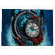 O Relógio Na Mista do Infinito. Um design quase surreal, no centro dessa poesia visual é um grande relógio de bolso ornamentado, seus algarismos romanos gravados no disco como segredos antigos. Eles parecem sussurrar as histórias de eras passadas enquanto elas permanecem no silêncio do tempo. O fundo é uma brincadeira mesmerante de nuvens azuis e azuis escuras e robustas, Essas nuvens parecem carregar o peso do infinito à medida que elas movem o vento gentilmente ao redor do relógio, dando a ela uma aura de mistério.
