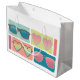 Saco de presente ilustrado com uma mão divertida, com um quadrado de óculos escuros em tons de rosa, lacre, coral e amarelo sentados em fundo angustiado. Excelente para uma festa de piscina, aniversário, churrasco ou só um verão divertido se juntam.