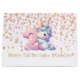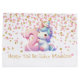 Um unicórnio bonito e adorável, com um fundo de brilho rosa e dourado neste saco de presentes segundo aniversário para meninas. Personalize com o nome dela.