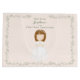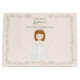 Menina Comunitária Rezando Esta bela e doce design de Primeira Comunhão de uma menina morena rezando pacificamente em seu dia especial está em um pessegueiro pálido e no fundo do sábio. Acentuado com uma moldura de folha de flor silvestre. Tome as memórias excelentes da primeira comunhão sagrada do seu filho com este belo design. Confira os acessórios da Primeira Sagrada Comunhão, papelaria e presentes de comunhão.