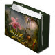 Essa imagem é uma versão parecerá da incrível obra da Floresta Amazônica feita por Martin Johnson Heade, que apresenta um close-up de uma orquídea Cattelya exótica, rosa, com 3 beija-flores brasileiras - uma bela obra botânica da arte. Um filtro simulado de foto/aquarela foi executado na imagem para mostrar sua luminosidade. Este belo trabalho de 1871 está no dominio público e é disponibilizado para o commons do Flickr por Swallowtail Garden Seeds. Os lados do saco estão em um verde-escuro complementar.