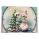 Ossos, bolas, e um pouco de magia - o espetáculo de Natal do esqueleto. O esqueleto da frente veste um vestido cor-de-rosa e um chapéu clássico de Papai Noel, dando à imagem um toque alegre e incomum. Ele tem um pequeno ornamento espumante, pronto para decorar a árvore. O segundo esqueleto fica ao lado da árvore, também segurando um ornamento, que ele amarra para complementar as decorações festivas. A árvore de Natal propriamente dita é decorada com ornamentos coloridos em várias cores e formas, dando-lhe uma aparência viva e alegre.