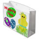 Meu Design Digital Pintado À Mão Com Gráfico Original. Felz pascoa para você, de sacos de presentes de férias de Páscoa para meninos e meninas de todas as idades. O Salto de Hippity é escrito no verso com pintinho amarelo agudo eclodido do seu ovo azul e verde listrado com a aparência de ouro e brilho azul na cabeça, asas e faixa azul eclodida, sentada na grama do cesto da Páscoa verde, com ovos decorados bonito na frente e atrás do saco. Manter o texto como está ou personalizar os campos de texto. Projetado para Bolsas brancas. Se você escolher uma cor de fundo diferente, clique em Personalizar, clique em Mais e marque Mostrar brancos como Transparentes clicando na imagem da camada frontal Bunny e na imagem da camada anterior para Ovo Pintinho e Roxo e selecione a cor do seu saco de fundo na paleta de cores. Sacos-presente de tipo único para os seus presentes especiais de férias de Páscoa, ou aniversários de Páscoa para familiares e amigos, colegas de trabalho ou vizinhos de Todas as Idades! NOTA: meus Designs Digitais Pintados à Mão com Gráfico Original não podem ser alterados ou reproduzidos Copyright © 2013, 2015 TamiraZDesines. Todos os Direitos Reservados. Visite minha loja para ver mais itens originais: www.zazzle.com/tamirazdesigns