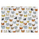 Uma coleção de rabiscos engraçados na face do gato, com pelo colorido em tons e marcas únicos e dispostos em um padrão reproduzível. Estas caras de gatos eram originalmente desenhadas à mão com caneta e lápis e depois transferidas para um formato vetorial para impressões de grande escala!