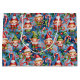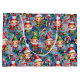 Padrão único de Natal com elfos e decoração de Natal em fundo azul.
