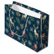 Sacola Para Presentes Grande Padrão de Natal com cervo e borboletas azuis