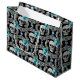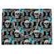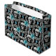 Os crânios de cinza e as flores azuis são a característica deste saco-presente único e atraente. O padrão é colocado sobre um fundo preto dramático. Ambos os lados da bolsa têm a mesma imagem.