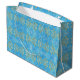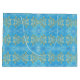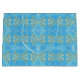 Saco de presente floral de ouro na moda e chic. Este elegante design de floral de ouro sobre fundo azul fará com que seu presente fique de pé nesta temporada de festas.