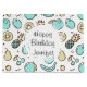 Saco de presente com um estilo de desenho de linha de padrão de frutas fofo. Cores verde claro e amarelo. Um design divertido de verão.