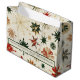 Sacola Para Presentes Grande Padrões Dourados e verdes com flocos de neve elega