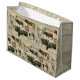 Um rancho de presente para gado, fazenda ou fazenda para o russo ocidente, em meio quente, que tem um toque decididamente masculino. "Vaca Fazenda Rústica, Pai Masculino, Tan Wooden Pattern Gift Bag." Um padrão de meio tijolo feito a partir da textura de madeira meio-quente que é rústica, curvada, reclusa de fundo de conselho de celeiro de madeira que também tem a escrita manual de efemera, vintage boi botânico e um vaqueiro de cavalo. Esta colagem foi criada por uma artista e designer internacionalmente licenciada, Audrey Jeanne Roberts, autora.