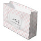 This pretty gift bag is ready to be personalized with your own message on the front. Add your own custom message in the large script lettering and a second message in the printed text below. The black text appears in a white oval frame that's set against a pink and white checkerboard pattern with painted pastel pink squares and alternating white squares.