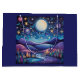 Saco de presentes com uma bela ilustração. Vírus caprichoso e fantasioso. Uma lua grande brilhando com estrelas ao redor. Passando por uma bela paisagem de árvores, montanhas e um rio sinuoso. Incrível vibração mística mágica.