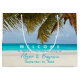 Saco de presentes ou bolsa de favores para hóspedes que vão a um destino, casamento de praia. Encham este saco de boas-vindas com uma cena tropical de água do oceano de turquesa e uma palmeira grande. Personalize as linhas de texto para incluir nomes da noiva e do noivo, local de destino do casamento e data.