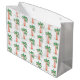 Este saco de presentes de Natal tropical apresenta palmeiras festivas cobertas de luzes e bolhas. Original Watercolor © Michele Davies.