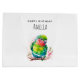 Saco de presentes com uma ilustração fofa de papagaio. Um pequeno papagaio verde com cores azuis e amarelas se misturando. O pescoço tem um tom vibrante de rosa avermelhado.