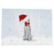 entregue Weimaraner tirado que veste um chapéu do papai noel que senta-se no saco do presente do Natal da neve