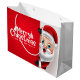 Um saco de presentes de Natal festivo com um design de Papai Noel alegre, destacando as cores vibrantes e os detalhes divertidos, criando um olhar alegre.