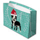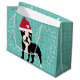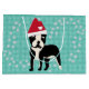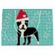 Este giro e divertido estilo de desenho animado preto e branco, o cão Boston Terrier fica feliz enquanto veste um chapéu de Papai Noel. Design por Diane Blackman